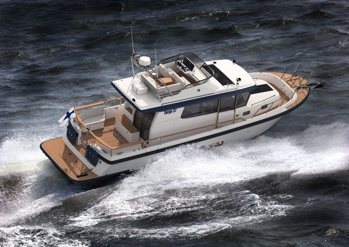 The new Targa 37 debuts this autumn, combining a 44-knot top speed with rugged Finnish engineering for ultimate offshore cruising.