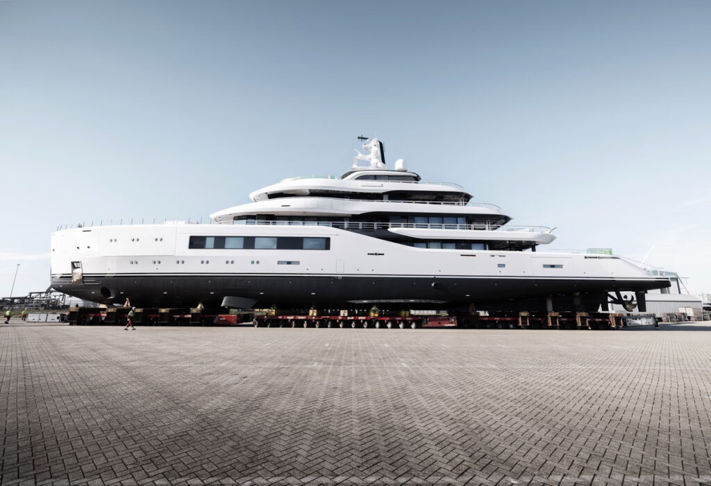 This 80-metre superyacht includes a 6.5-metre glass-bottomed pool on the Main Deck Aft, which serves as a skylight for the Beach Club below. The Beach Club opens on three sides, creating direct access to the sea, and incorporates a comprehensive wellness and spa area featuring a gym, hammam and sauna. Further signature elements of the Amels 80 include a spacious Sun Deck complete with a substantially sized jacuzzi. The launch represents this Amels 80’s first appearance quayside at the Dutch shipyard since arriving for outfitting in January 2025. As the third yacht in the new Amels 80 series, she reflects the strength of the Amels Limited Editions concept, combining personalisation with the assurance of a proven technical platform. With exterior design
