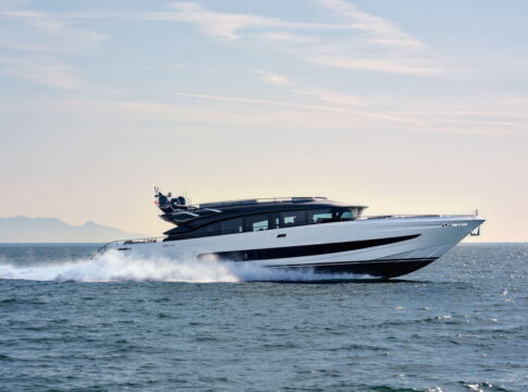 The distinctive features of the new model include the sleek hardtop, which is designed to be fitted with the optional glass windscreen in a solution that increases cruising comfort in all conditions. The helm station also has a more sculpted design, with a more ergonomic layout and optional air conditioning for maximum driving comfort. Special attention was also given during the design process to technical and functional aspects: the new air inlets integrated into the hull improve cooling in the engine room, which has a large electrically operated door to facilitate access for maintenance. A technical compartment in the stern houses the mooring gear.