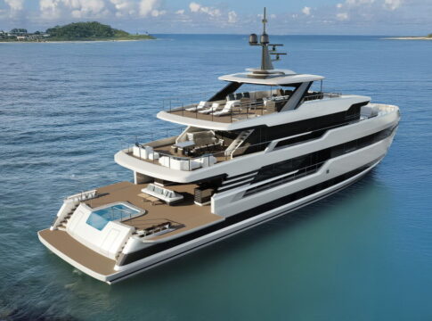 The wet bar is fully customised to suit the owner’s preferences and can be fitted with two 85-litre refrigerators, an ice maker and a barbecue, grill or induction hobs, as well as a spacious compartment for tableware. Completing the outdoor experience is the almost six-square-metre stern platform featuring a retractable swim ladder and a tender lift system. The interiors are designed to offer comfort and bright spaces. The master cabin is part of an open-plan layout but can be separated completely from the living area by a door, ensuring complete privacy for the owner. The cabin is also fitted with two large full-height wardrobes and numerous storage compartments.