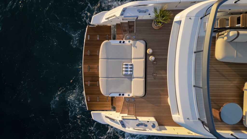 Seadeck, the Series that embodies the gentle at sea philosophy, symbolises an approach to design that invites genuine connections with nature. As a result of this conscious design concept and hybrid propulsion systems, the Series redefines the concept of life on board, prioritizing spaces that are open, fluid and in constant dialogue with the marine environment especially through the Fun Island, the reinvented cockpit that embraces the water. On display at the boat show is Seadeck 6, created in collaboration with Alberto Mancini for the exteriors and Matteo Thun & Antonio Rodriguez for the interiors, the designers behind all the models in this Series.