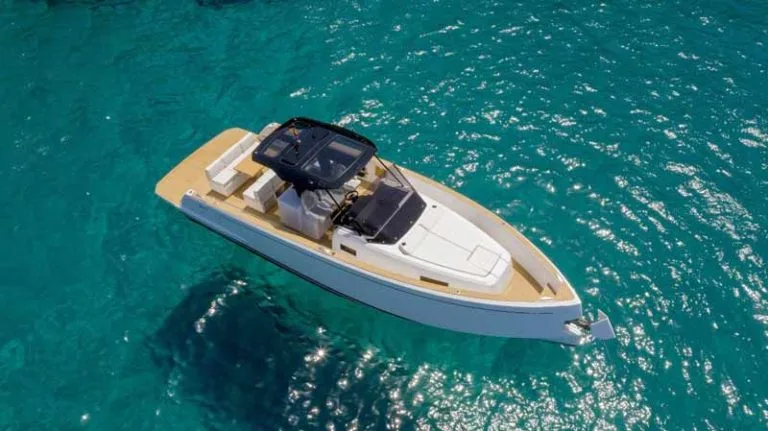 You can argue about terminology, but what Cranchi calls a ‘tender’ has nothing in common with a dinghy. The ‘Luxury Tenders’ from the Italian luxury manufacturer are fully-fledged motor yachts. Their A32 is the smaller version of the large A46. Both are available in open or hard top versions. The 10-metre-long A32 has a cabin with a separate bathroom, induction cooker, refrigerators in the cockpit and below deck, and marble and oak paneling. The large bathing platform with shower is made even more spacious by fold-downside walls. The sofa and sunbathing area combine at the stern to form a pure upholstered lawn. The 700 hp Volvo Penta engines elegantly and powerfully propel the hull with optional Seakeeper gyro stabilizers. The Cranchi A32 is made for fair-weather regions. With this in mind, the shipyard has designed the deck layout for optimum comfort and flexibility in the open air. Luxury is a far better description than tender.
