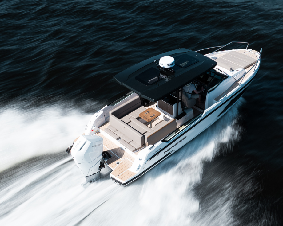 For half a century, Nimbus has stood for the discreet charm of functionality under the toughest conditions. The Swedish shipyard builds boats that perform at their best all year round in the Scandinavian north. Even below its coupé cruiser lines, Nimbus has always impressed with its tenders, commuters and weekenders. With the 12 series, they are modernizing the 11 series both aesthetically and functionally. The basic concept remains unchanged: walkaround boats with a two-stage high-performance hull that can easily reach speeds of up to 45 knots. The innovations are in the details. All three models – Tender, Commuter, Weekender – feature newly shaped helm seats, an extended stern platform and an upgraded design. The Mercury outboards are equipped with Mercury joystick control, while the Volvo Penta inboards feature a joystick docking system. The Tender has solar panels integrated into the extended T-top. The redesign of the seating area and galley makes the Commuter even more comfortable in all seasons. Swedish design is proverbial – thanks in part to Nimbus.