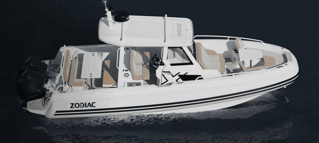 Zodiac is an authority in the RIB segment, from tenders to the large XXC line. The successful 10-metre X10CC version is now followed by the more compact X9CC alternative. Up to 15 people can enjoy the advantages of a RIB with a solid hull and rubber tubes on a length of 8.60 meters: fast, maneuverable, safe and stable. The covered center console is protected at the front by a windscreen with windscreen wipers. The helm with two seats is located on the right, while on the left there is a double cabin with upper windows and a separate bathroom. The sunbathing areas in the bow and stern can be converted from a seating area with table to a sunbathing area. A hand shower is installed in the stern and an electric anchor winch in the bow. The entry step and handrail make moving around on deck safe and easy. The two 250 hp outboard motors are supplied with sufficient fuel for long day trips from a 620-litre tank. Various paint finishes are available, from white to military grey. Whichever style you choose, with the X9CC you always get the proverbial Zodiac quality.