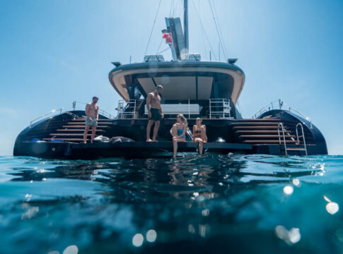 The glass theme is just as prominent on the cabin deck, where a continuous glass band surrounds the entire upper level for uninterrupted views. Located forward in the bow, beneath the helipad, is a glass-encased observation lounge, while aft lies an open balcony with a glass balustrade, which overlooks the spacious main deck.