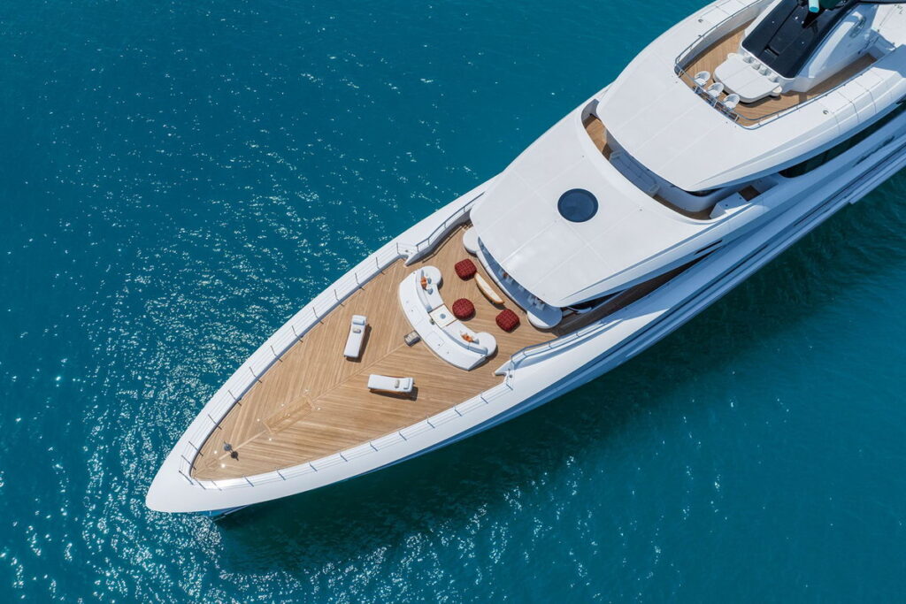 CRN M/Y AMOR À VIDA combines the engineering expertise of CRN and the Ferretti Group Superyacht Division with the creativity of world-famous yacht design firm NUVOLARI LENARD, showcasing made-to-measure interiors and fine detailing in collaboration with Valentina Zannier, Interior Art Director at Nuvolari Lenard. Moran Yacht & Ship is the brokerage house that has been working with and representing the owner throughout the entire design and construction process.