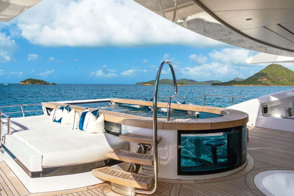 CRN M/Y AMOR À VIDA has a hybrid propulsion system, the first installed by the shipyard, which increases the fuel consumption efficiency of both the main engines and the generators and translates into smooth, silent cruising, while the heat recovery system significantly reduces energy consumption and operating costs, particularly when the yacht is anchored offshore. The maximum speed is 16 knots, and the cruising speed is 15 knots.