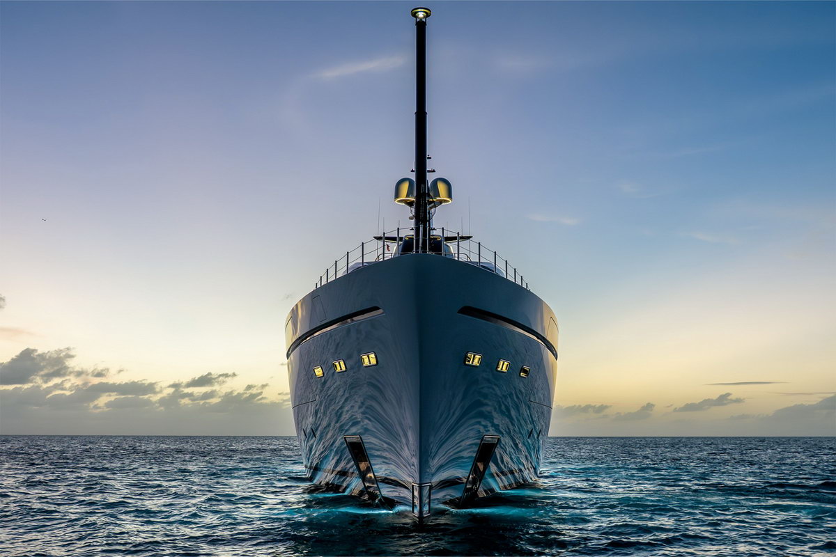 The curved lines of the yacht’s dynamic silhouette sweep down from the bow on the Upper Deck to the beach club and merge into the wake when cruising. The main mast dominating the entire structure completes the elegant combination of curved forms that make this yacht unique.