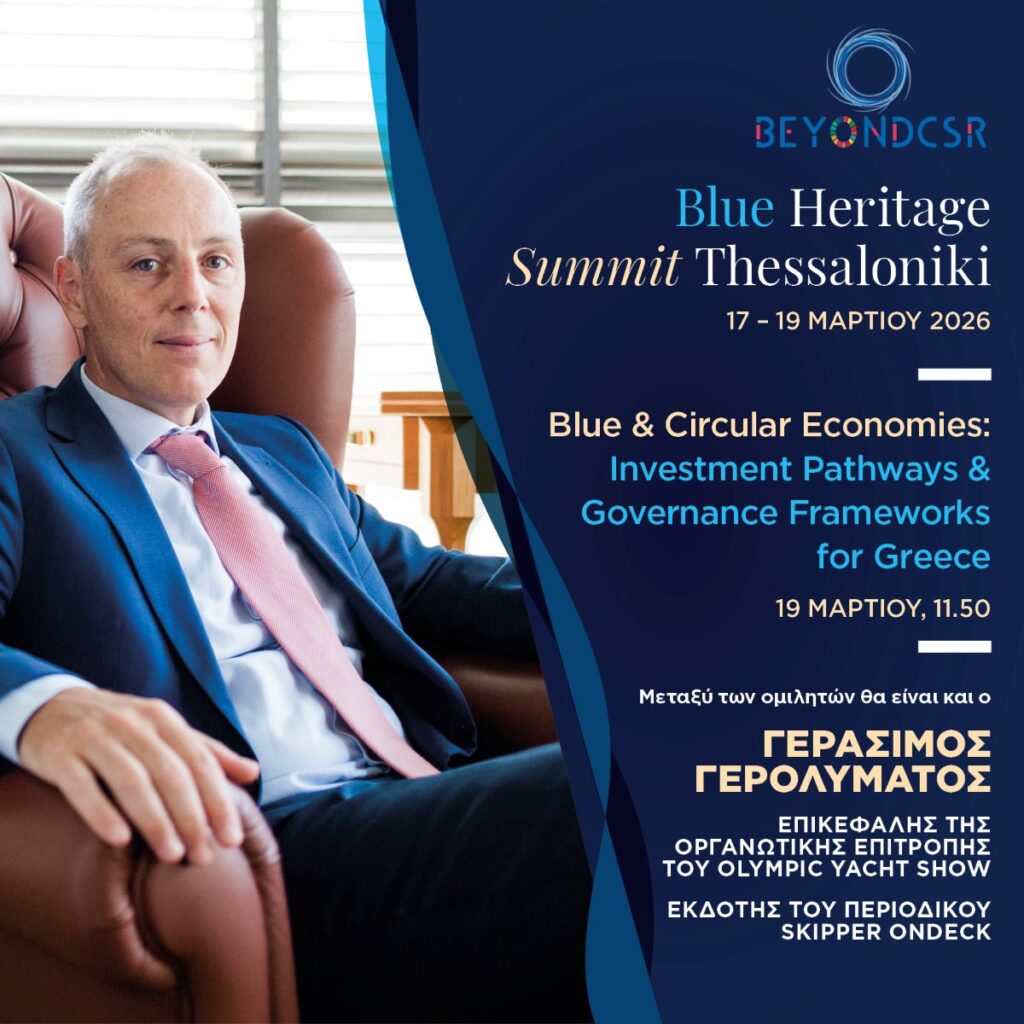 Ραντεβού στη Θεσσαλονίκη και στο 1st BLUE HERITAGE SUMMIT THESSALONIKI, που διοργανώνει ο οργανισμός ΒeyondCSR με την αιγίδα και στήριξη του Υπουργείου Εσωτερικών-Τομέας Μακεδονίας και Θράκης δίνουν από τις 17 έως τις 19 Μαρτίου πάνω από 90 ομιλητές από το ελληνικό και το διεθνές πολιτικό, ακαδημαϊκό και επιχειρηματικό προσκήνιο. Θέμα του Συνεδρίου είναι «Navigating Innovation at the Geopolitical Crossroads» («Πλοηγώντας την Καινοτομία στα Γεωπολιτικά Σταυροδρόμια») και οι εργασίες του αρθρώνονται σε πέντε θεματικές ενότητες: Γαλάζια και Κυκλική Οικονομία, Τεχνολογία, Καινοτομία και Εκπαίδευση, Πολιτισμός και Τουρισμός.