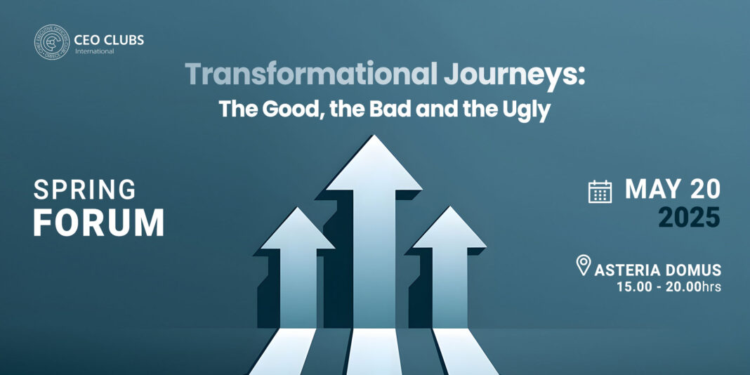 Το καθιερωμένο εαρινό Φόρουμ του CEO Clubs Greece θα λάβει χώρα φέτος στις 20 Μαΐου στον υπέροχο χώρο του Asteria Domus υπό τον τίτλο «Transformational Journeys: The Good, the Bad, and the Ugly», παρουσία των σημαντικότερων CEOs και επιχειρηματιών στην Ελλάδα καθώς και των διοικητικών τους ομάδων.