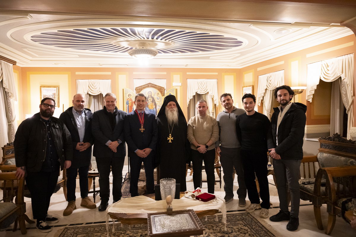 Ο Δημήτρης Χριστοφιλέας του «Δειπνοσοφιστηρίου» τιμήθηκε με τον Μεγαλόσταυρο του Αγίου Γεωργίου στη Μονή Ξενοφώντος για το ήθος και την προσφορά του.