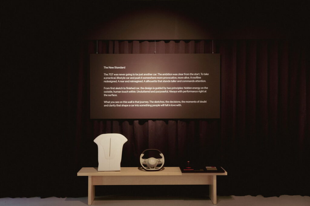 Κεντρικό έκθεμα αποτελεί το νέο Zeekr 7GT, παρουσιασμένο μέσα από μια εμπειρία που συνδυάζει design, τεχνολογία και αισθητηριακή αλληλεπίδραση.