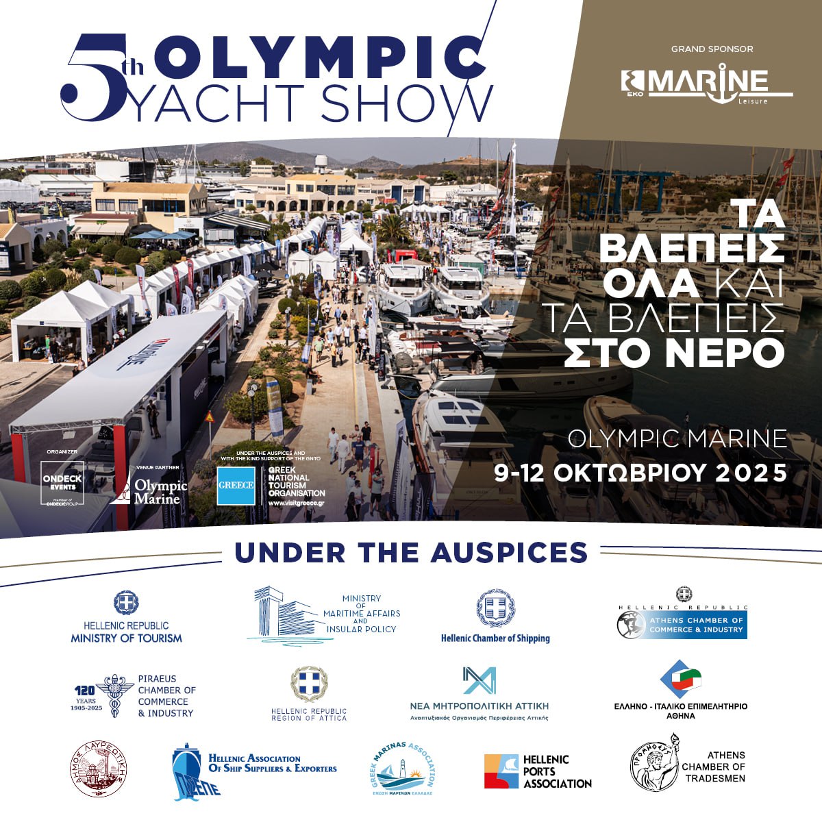 Με τη θεσμική παρουσία της Πολιτείας ενισχύεται η διοργάνωση του Olympic Yacht Show, επιβεβαιώνοντας τον ρόλο του ως κορυφαίο γεγονός στον χώρο του θαλάσσιου τουρισμού και του yachting.