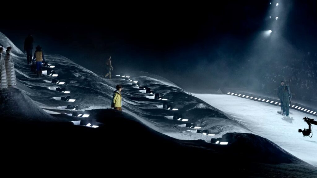 Η παρουσίαση της συλλογής πραγματοποιήθηκε υπό το φως του φεγγαριού, σε ένα περιβάλλον όπου οι παρθένες πλαγιές αποτέλεσαν το φυσικό πλαίσιο για την πασαρέλα. Οι καλεσμένοι, αφού πέρασαν την ημέρα τους κάνοντας σκι και πεζοπορία, μεταφέρθηκαν στο χώρο της εκδήλωσης με τον μόνο τρόπο που θα ταίριαζε στην περίσταση: με snowmobiles μέσα από το δάσος. Τα μοντέλα περιηγήθηκαν ανάμεσα σε αναχώματα χιονιού φορώντας δημιουργίες σχεδιασμένες για το συγκεκριμένο έδαφος, ενώ προβολές φωτός με αλπικά δέντρα χόρευαν πάνω στο δάσος, συμβολίζοντας τη συνάντηση δύο διαφορετικών αλλά συγγενικών κόσμων.