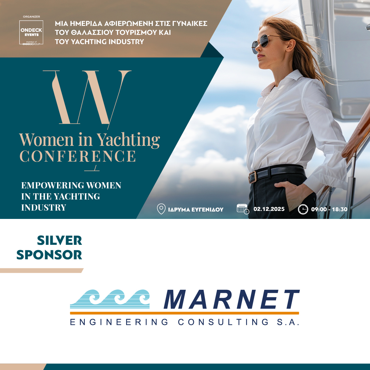 Η ONDECK Media ανακοινώνει με ιδιαίτερη χαρά τους Silver Sponsors του πρωτοποριακού Women in Yachting Conference, το οποίο θα πραγματοποιηθεί στις 2 Δεκεμβρίου στο Ίδρυμα Ευγενίδου. Η διοργάνωση, η οποία αποτελεί μία από τις πιο δυναμικές πρωτοβουλίες ενδυνάμωσης της γυναικείας παρουσίας στο χώρο της θάλασσας, υποδέχεται ως πολύτιμους υποστηρικτές τρεις κορυφαίες εταιρείες: τη Marnet S.A., τη The International Yacht Company (IYC) και την ΑΡΓΩ Α.Ε.