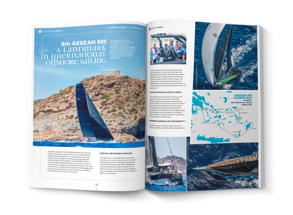 Παράλληλα, η έκδοση αποτυπώνει εμβληματικές στιγμές της παγκόσμιας ιστιοπλοΐας, από την εκρηκτική εκκίνηση της σεζόν Rolex SailGP 2026, όπου ο σκληρός ανταγωνισμός συναντά την πρωτοποριακή καινοτομία, έως την επιστροφή του Cyclades Cup, που σμίγει αριστοτεχνικά την αγωνιστική ένταση με την αυθεντική νησιωτική αύρα. Την εικόνα ολοκληρώνει το Aegean 600, μια elite offshore δοκιμασία που αναδεικνύεται σε απόλυτο τεστ στρατηγικής δεινότητας και ανθρώπινης αντοχής στα απαιτητικά νερά του Αιγαίου.
