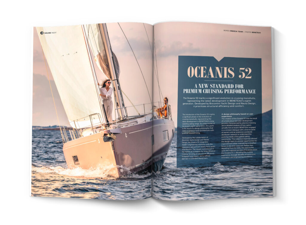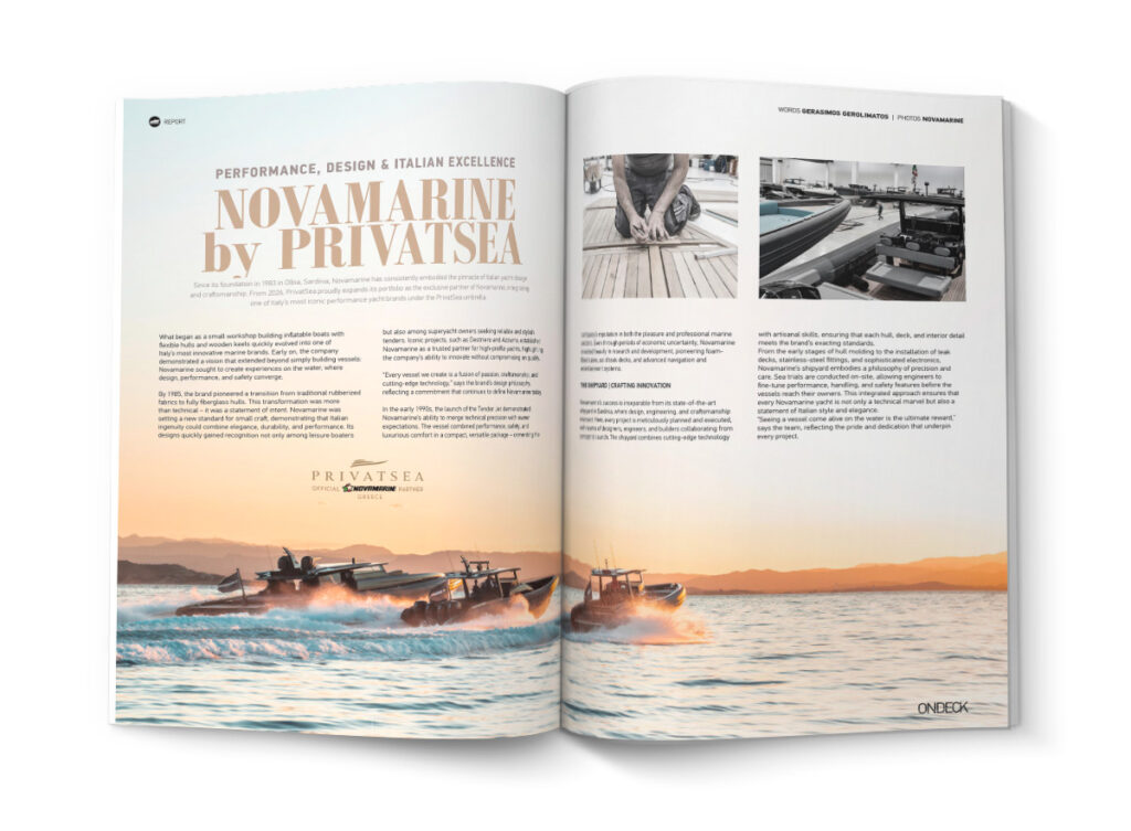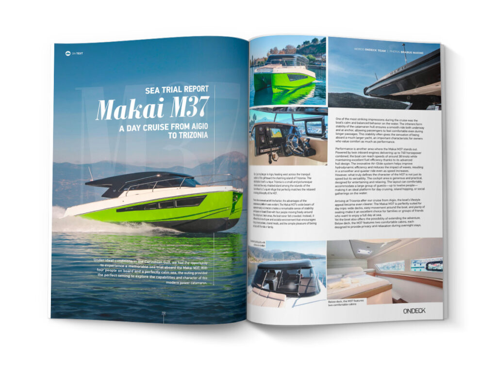 Στην ενότητα ξεχωρίζουν: το Oceanis 52 της Beneteau, που αποτελεί το επόμενο ορόσημο στην 8η γενιά των cruising monohulls, το εντυπωσιακό Acqua Chiara 47M από τη Hot Lab, που παντρεύει τη σχεδιαστική φιλοσοφία των ιστιοπλοϊκών με τη διαχρονική εσωτερική κομψότητα, το επαναστατικό B.Neos της Benetti, που εισάγει την υβριδική πρόωση σε ένα πακέτο εκλεπτυσμένου design, τα Novamarine BS120 & RH1000, που συνδυάζουν τις εκρηκτικές επιδόσεις με την απόλυτη εξατομίκευση, καθώς και το Makai M37, το οποίο η ομάδα της ONDECK είχε την ευκαιρία να δοκιμάσει σε μια αξέχαστη εμπειρία sea trial, υπό τις ιδανικές συνθήκες του Κορινθιακού κόλπου.