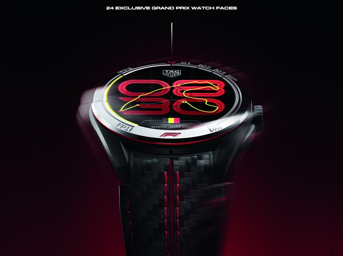 Στην καρδιά αυτής της έκδοσης βρίσκεται το κεντρικό watch face, το Race Track, με την ψηφιακή ώρα να προβάλλεται κάτω από το περίγραμμα της πίστας και με σχεδιασμό που προσαρμόζεται σε κάθε Grand Prix, εκπροσωπούμενο από τη σημαία της χώρας, το όνομα του αγώνα και τη χαρακτηριστική σιλουέτα της εκάστοτε διαδρομής. Το ρολόι εξελίσσεται αυτόματα κατά τη διάρκεια της σεζόν, παρουσιάζοντας 24 μοναδικά σχέδια για 24 αγωνιστικά Σαββατοκύριακα Grand Prix, δημιουργώντας μια δυναμική σύνδεση με το πρωτάθλημα. Ως μια παιχνιδιάρικη τελική λεπτομέρεια, μια κινούμενη κουκκίδα διατρέχει το περίγραμμα της πίστας, υποδεικνύοντας τα δευτερόλεπτα που περνούν. Παράλληλα με το Race Track face, όλα τα κλασικά watch faces της TAG Heuer έχουν επανασχεδιαστεί ώστε να ταιριάζουν απόλυτα με την έκδοση TAG Heuer Formula 1 και το φυσικό ρολόι, διασφαλίζοντας ότι κάθε στυλ αντανακλά το πνεύμα της πίστας.