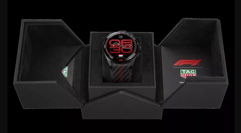 Επεκτείνοντας αυτή την κληρονομιά στη ψηφιακή εποχή, η TAG Heuer πρωτοστάτησε το 2015 στην κατηγορία των πολυτελών connected ρολογιών, συνδυάζοντας τη φινέτσα της παραδοσιακής ωρολογοποιίας με μια προηγμένη ψηφιακή εμπειρία. Το TAG Heuer Connected Calibre E5 45 mm x Formula 1 γεφυρώνει την παράδοση με την τεχνολογία, φέρνοντας τον κόσμο του Grand Prix απευθείας στον καρπό. Προσφέρει σε όσους το φορούν μια καθηλωτική εμπειρία της ενέργειας, της έντασης και του πάθους της Formula 1, αποτυπώνοντας την ουσία του πρωταθλήματος όπου κι αν βρίσκονται.