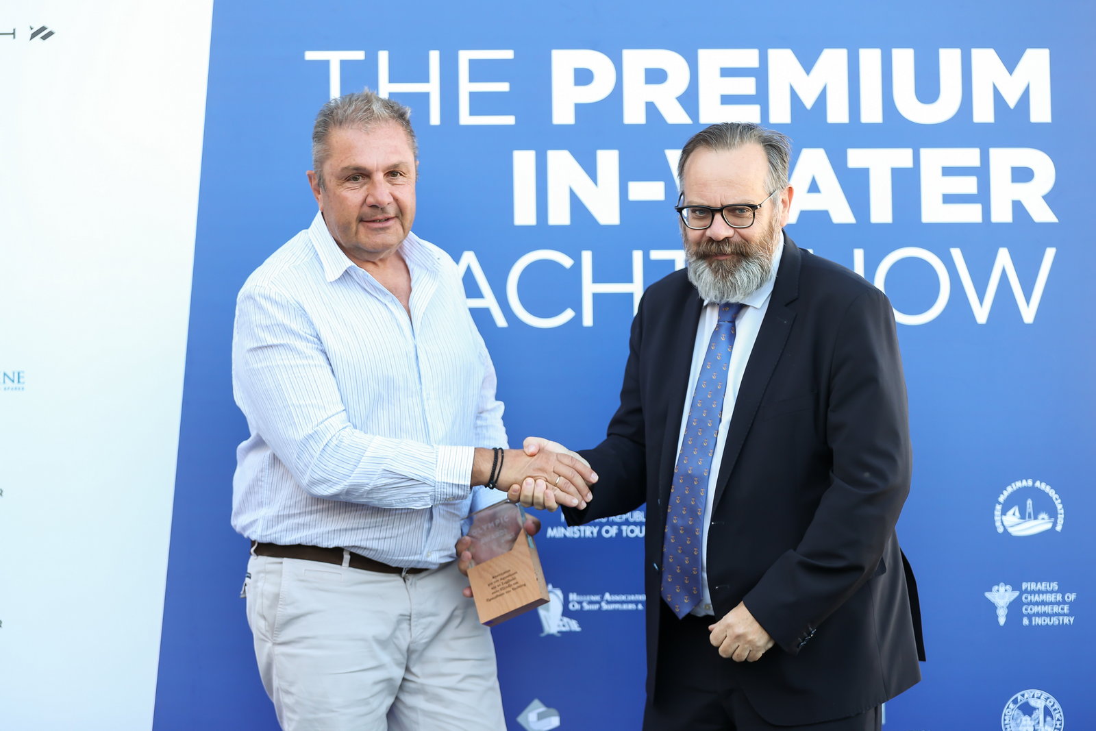Το επόμενο βραβείο παρέδωσε ο κ. Βασίλης Πολίτης, μέλος Δ.Σ. του Ναυτικού Επιμελητηρίου Ελλάδος, στον κ. Αλέξανδρο Ζέη για τα 40 χρόνια αδιάλειπτης παρουσίας της Motocraft στην αγορά του yachting.