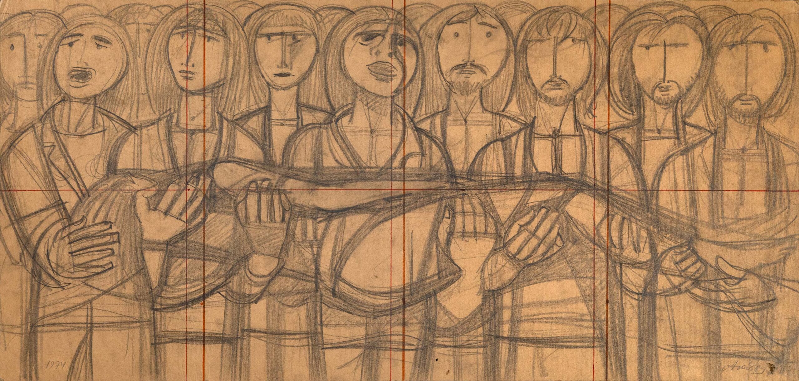 - Προσχέδιο για την ξυλογραφία τοίχου «17 Νοεμβρίου 1973» του Α. Τάσσου (Αναστάσιου Αλεβίζου). Πρόκειται για το προσχέδιο του κεντρικού τμήματος της σύνθεσης της εντυπωσιακών διαστάσεων (89 x 534 x 2,5 cm) ξυλογραφίας τοίχου του καλλιτέχνη, «17 Νοεμβρίου 1973». Η ξυλογραφία άρχισε να σχεδιάζεται τρεις ημέρες μετά τα γεγονότα του Πολυτεχνείου και ολοκληρώθηκε τον Σεπτέμβριο του 1975. Από το 2004 αυτό το έργο-σύμβολο της κορύφωσης του αντιδικτατορικού αγώνα «που παραπέμπει σε ζωφόρο», ανήκει στη συλλογή έργων τέχνης της βουλής των Ελλήνων και εκτίθεται έξω από την αίθουσα της Γερουσίας.