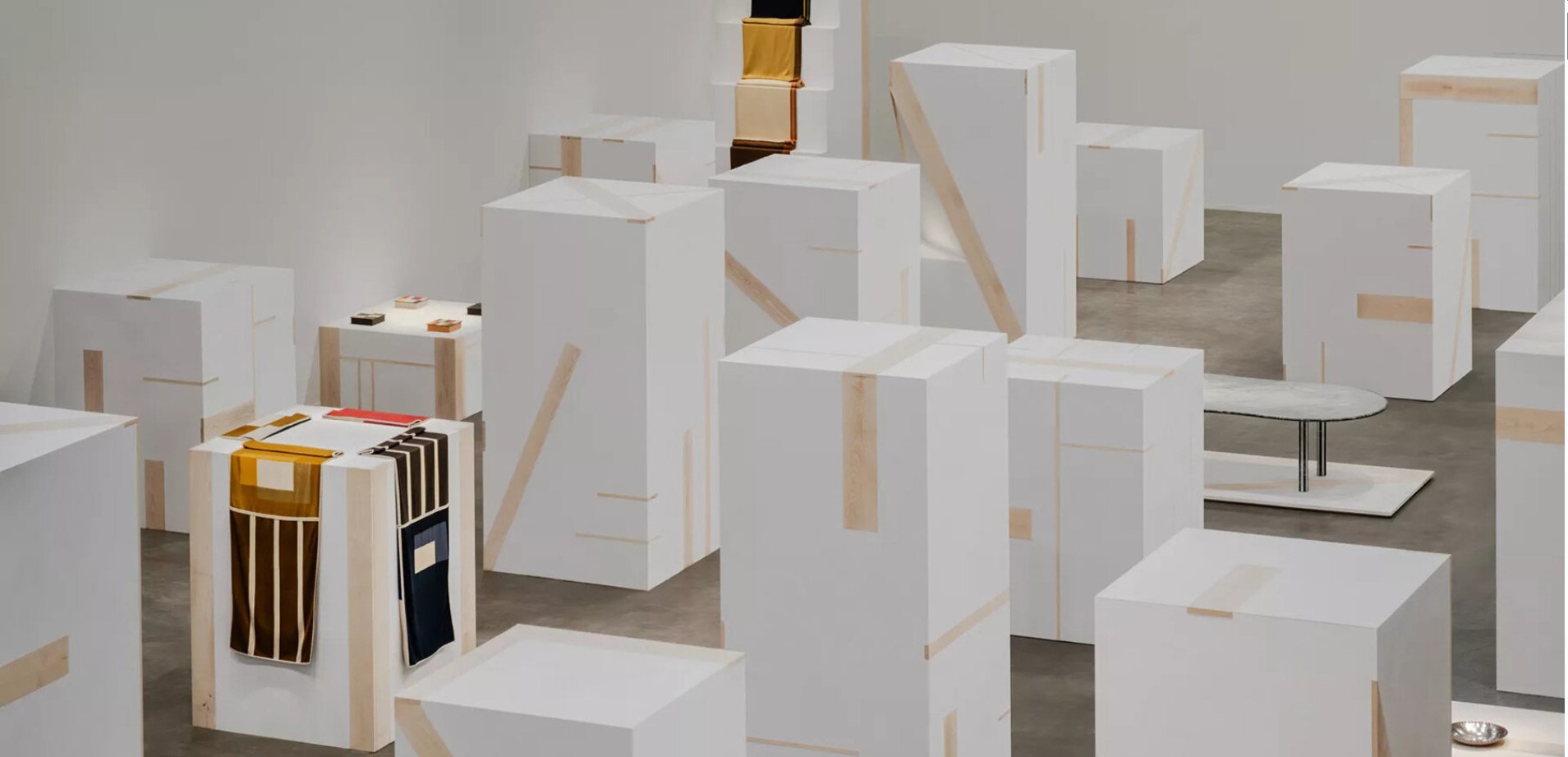 The experience of the Hermès installation is defined by movement rather than a single focal point. Because the heights of the beechwood plinths vary, the visual relationship between the objects constantly evolves as one walks through the paths. This design encourages a slower pace of exploration, as every step reveals a new alignment or a hidden detail in the interplay of forms. By focusing on the steady build of these relationships, the presentation demonstrates that the beauty of a home lies not just in the objects themselves, but in the intentional ways they are arrayed in relation to one another.