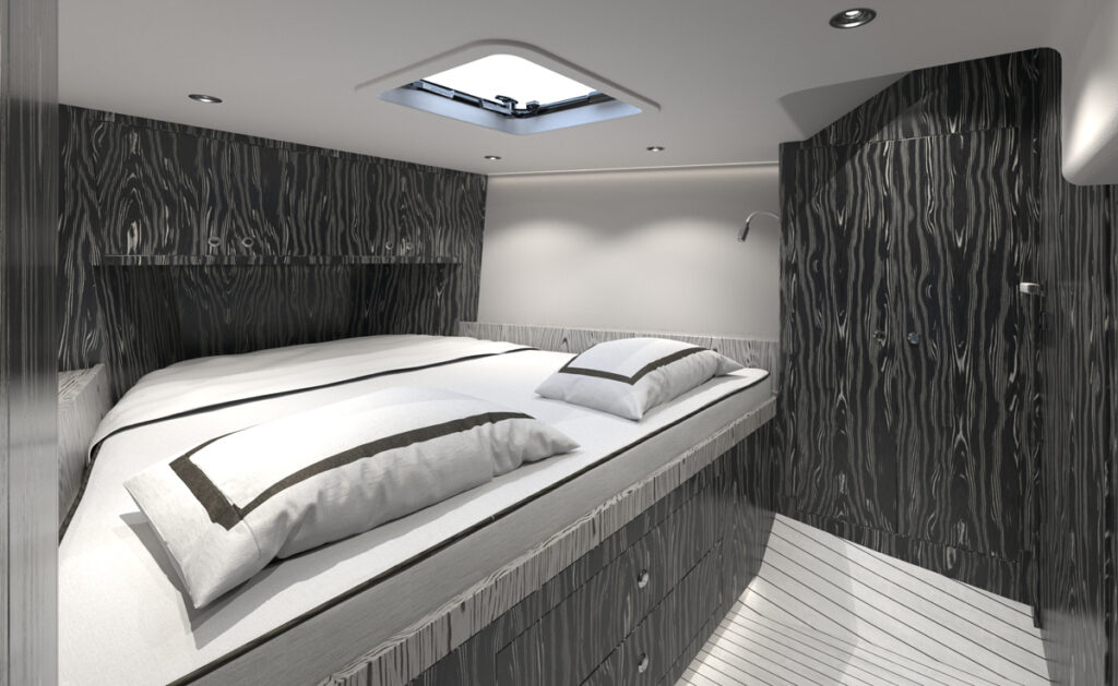 For the design of the TYKUN H1, the team worked hard to minimize the aesthetic impact of adding hydrogen tanks, and the result is a profile that carries TYKUN’s dynamic DNA in its lines with minimal compromise on either looks or practicality. “Aside from the ventilated tank spaces we also had to incorporate compartments for the battery bank and the fuel cell, but we achieved that while still, for example, being able to retain bow storage for the customer,” confirms Casadio.