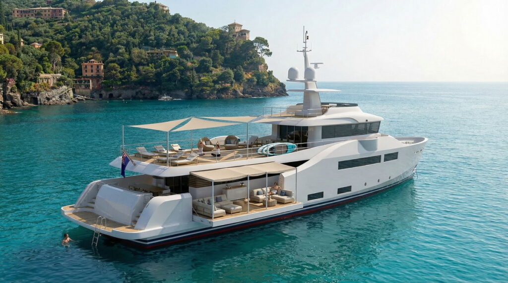 The most striking feature of the MedEx is its shallow-draft freedom. With a draft of just 2.0 meters, this yacht grants its owners the keys to the Mediterranean’s most secluded treasures. While larger vessels are forced to remain in deep-water channels, MedEx can navigate the turquoise shallows of the Cyclades, drop anchor in the tightest coves of the Amalfi Coast, and tuck into the “hidden harbours” that define the allure of sea travel.