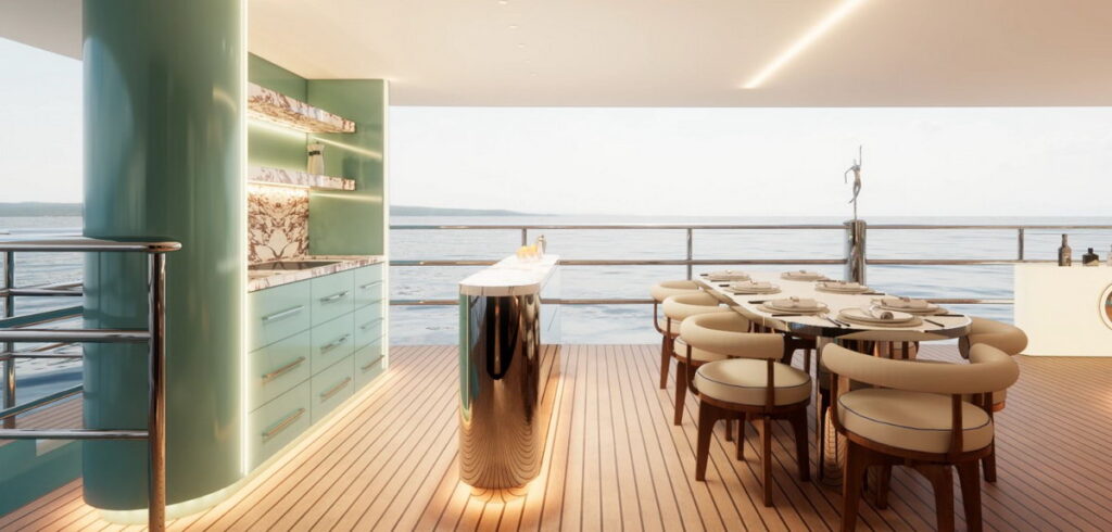 Sustainability and autonomy are at the heart of the TS40 concept. The vessel is engineered for a range exceeding 3,000 nautical miles, supported by a hybrid propulsion system that integrates MAN engines with electric pods for silent maneuvering.