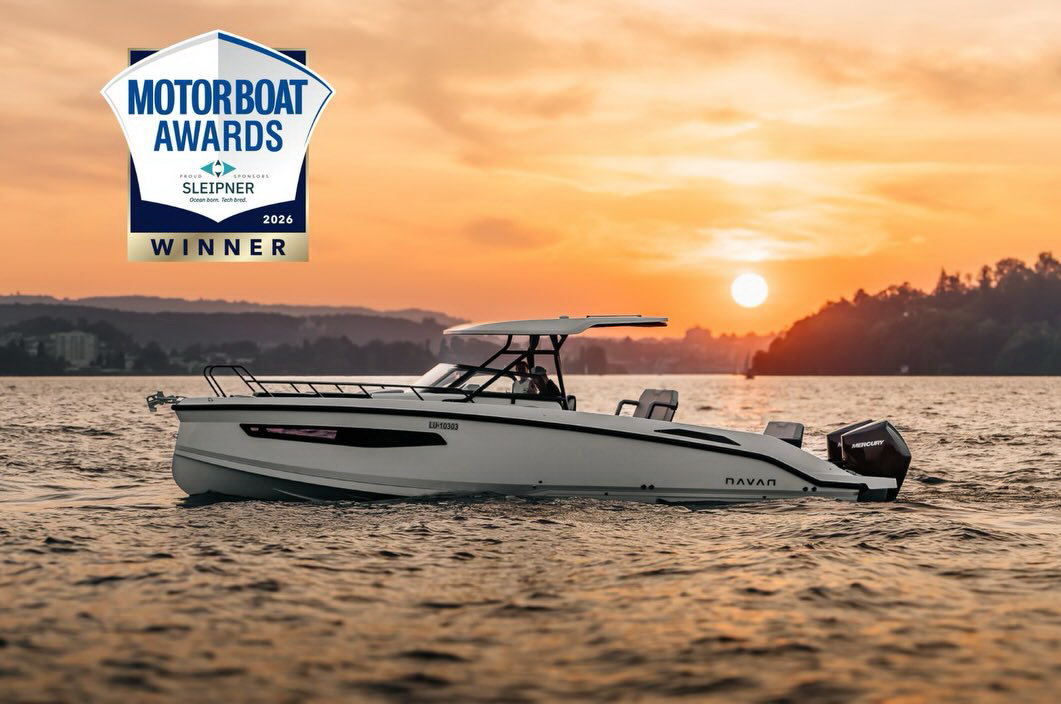 The Navan S30 won the Motor Boat Award, recognized for its walkaround design, performance, and comfort for weekend getaways.