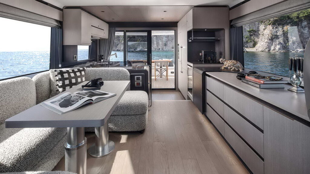 Featuring naval architecture signed by the legendary Frers Yacht Design, the Sirena 60 stands out for its ability to offer the comfort of a much larger yacht within a 60-foot hull, ready to meet the high demands of the American market. The yacht’s design places particular emphasis on connecting the passenger with the marine environment, utilizing large glass surfaces that eliminate visual barriers.