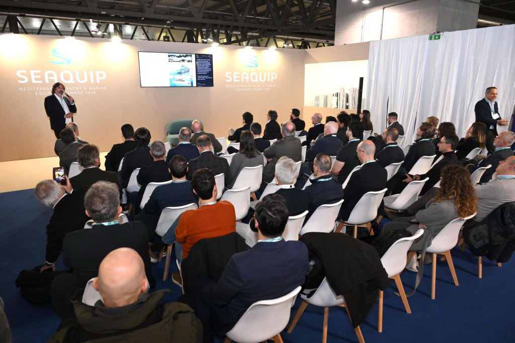 The final panel of the day, also organized by RINA and titled The Foiling Frontier, featured contributions from RINA, Ferretti Group, Sanlorenzo Yacht, and Foiling Organization. In addition to these panels, SEAQUIP offered exhibitors the opportunity to organize StandOut Speeches at their stands, encouraging discussion on the most current topics in the sector, starting from the innovative solutions presented at the fair. Among them, Nuncas Italia, developer and supplier of specialized products for cleaning, maintenance, and protection of yachts and boats, hosted a talk at stand D21 titled The Future is Biodegradable in Seawater.