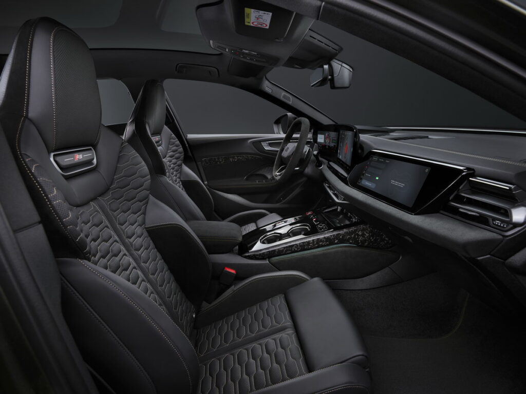 Despite its massive power, the RS 5 achieves an all-electric range of up to 84 kilometers. The 25.9 kWh battery utilizes improved cell chemistry to ensure power remains available even in extreme temperatures or at low states of charge. Using 11 kW AC charging, the battery can be replenished to 100 percent in roughly 2.5 hours.