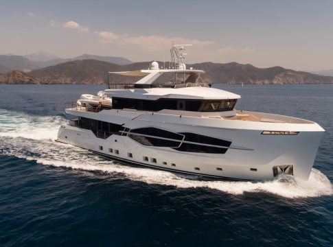 The twin deckhouse configuration includes an owner’s deckhouse aft and a central deckhouse complete with saloon. Also on deck will be three cockpits – one for the owner aft, the main cockpit amidships and a crew cockpit forward of the mast. A large tender will be stored on a recessed tender-well on the foredeck.