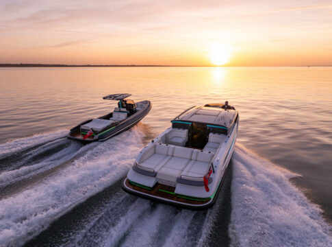 Carefully curated furnishings and artworks include a Minotti Hamilton sofa, sculptural lounges by Piegatto, and richly textured carpets by JAB, alongside a collection of artworks that enhance the villa’s tranquil atmosphere. Notably, textile sculptures by Anne Kyyrö Quinn and organic installations by the Phillips Collection echo the movement of the sea and the rhythm of nature.