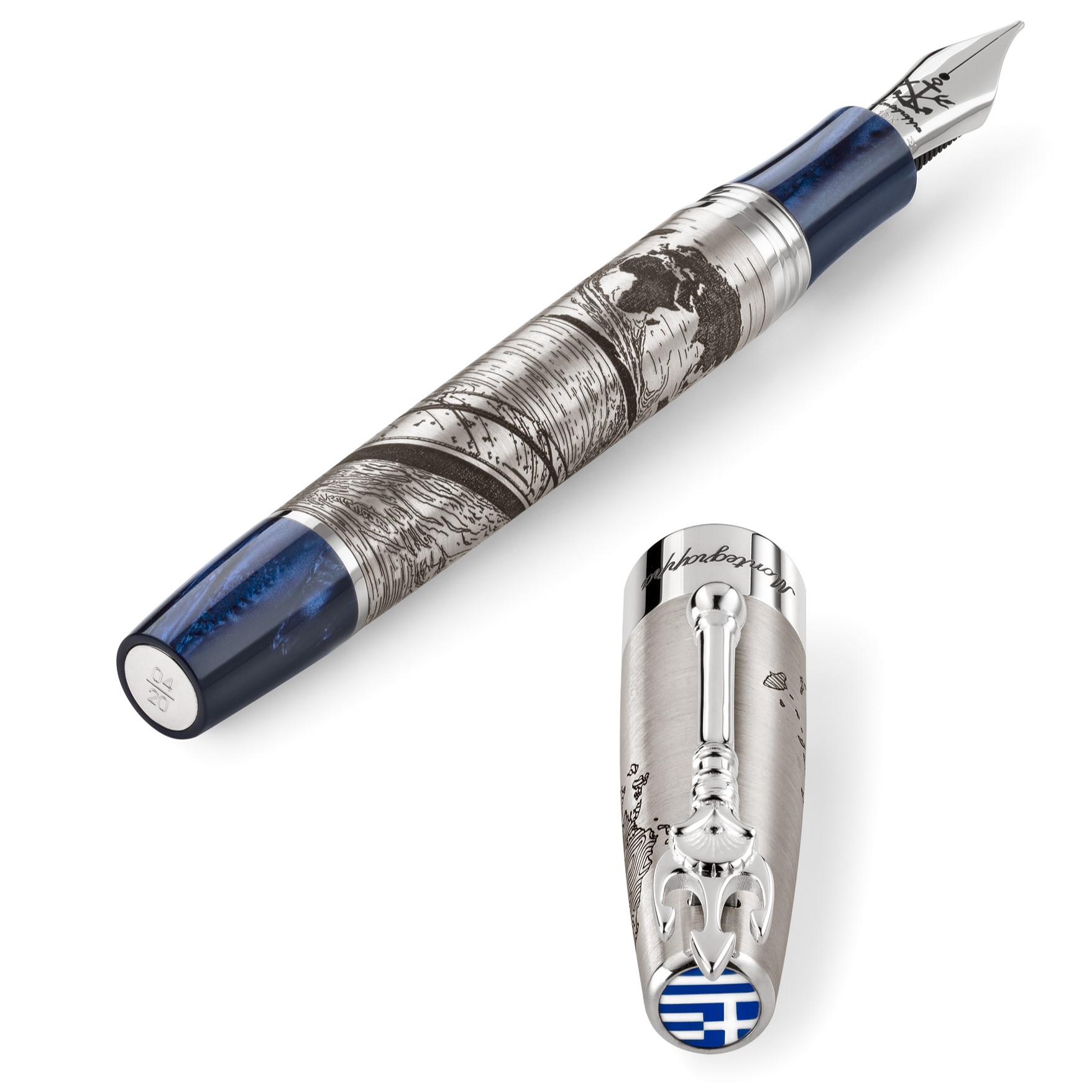 Each pen is a work of art, meticulously fashioned from 925 sterling silver and rare celluloid. The design pays homage to Greece’s dominance in global maritime trade, symbolizing the expansive reach of its commercial fleet across the seven seas. The collection comprises only 20 numbered pieces, making it a highly coveted treasure for collectors and connoisseurs alike. Conceived under the expertise of Montegrappa’s renowned ATELIER, this creation reflects the ingenuity of Italian craftsmanship and the vision of Head Designer, William Zanotta.